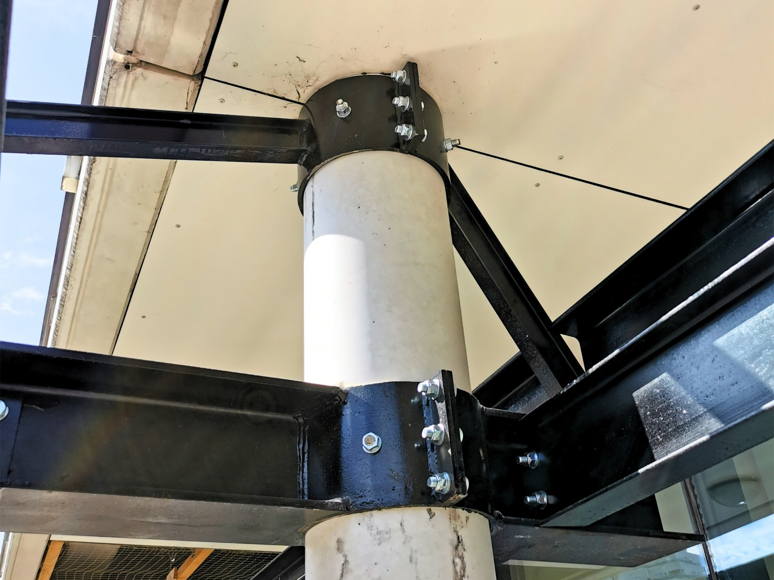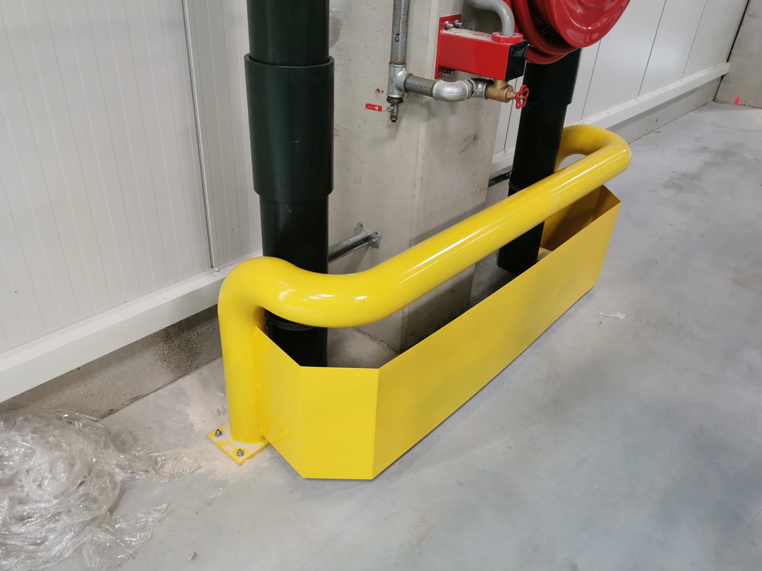 Pour renforcer la sécurité du site, des protections métalliques spécifiques ont été installées autour des descentes d’eaux pluviales, protégeant les installations contre tout choc ou dégradation.
