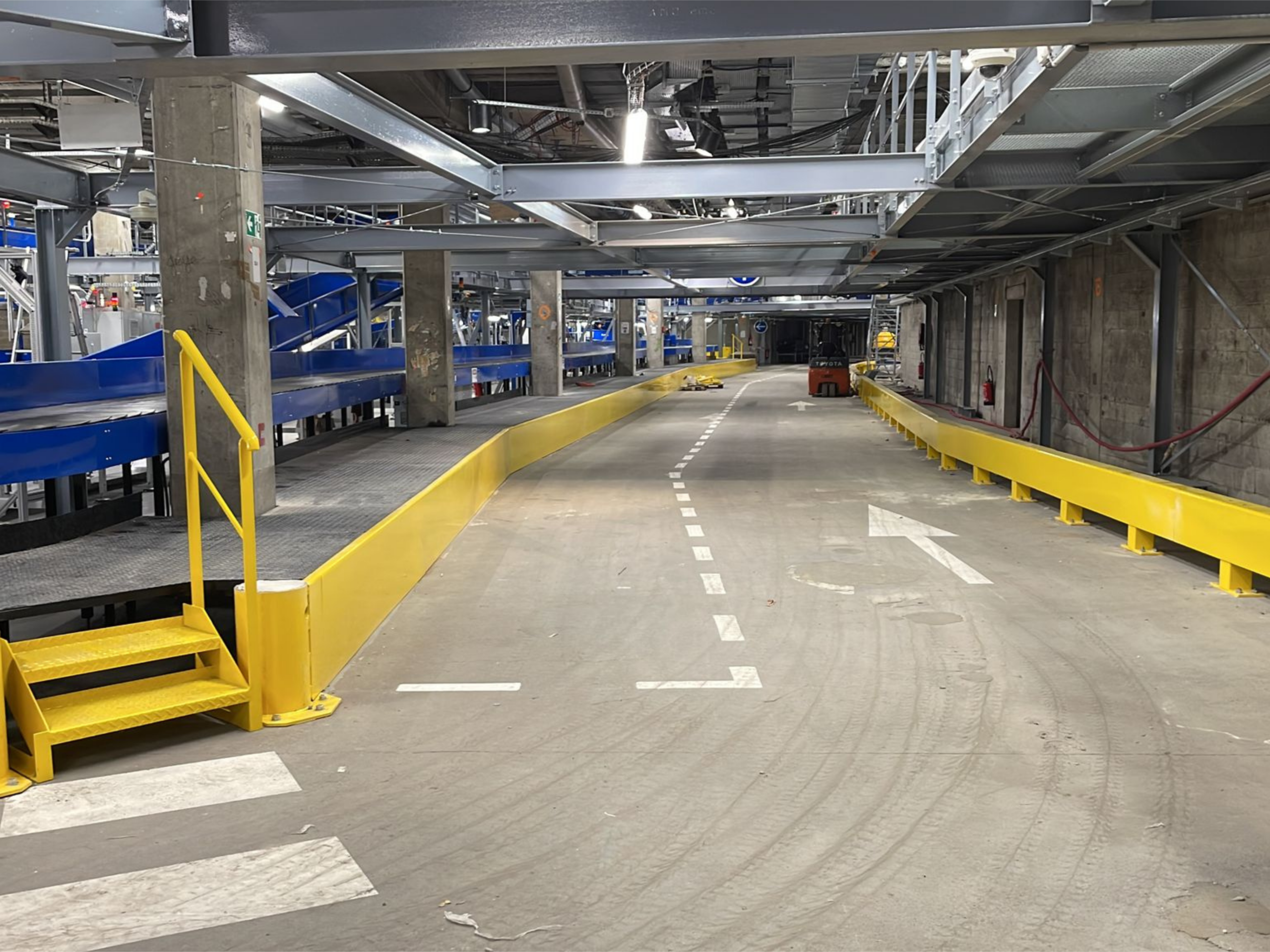 Sur les plateformes aéroportuaires d’Orly et de Roissy, la sécurité des installations techniques est un enjeu majeur. Les zones de tri bagages, traversées en permanence par des engins de manutention lourds tels que Fenwick et transpalettes motorisés, nécessitent une protection fiable et durable.