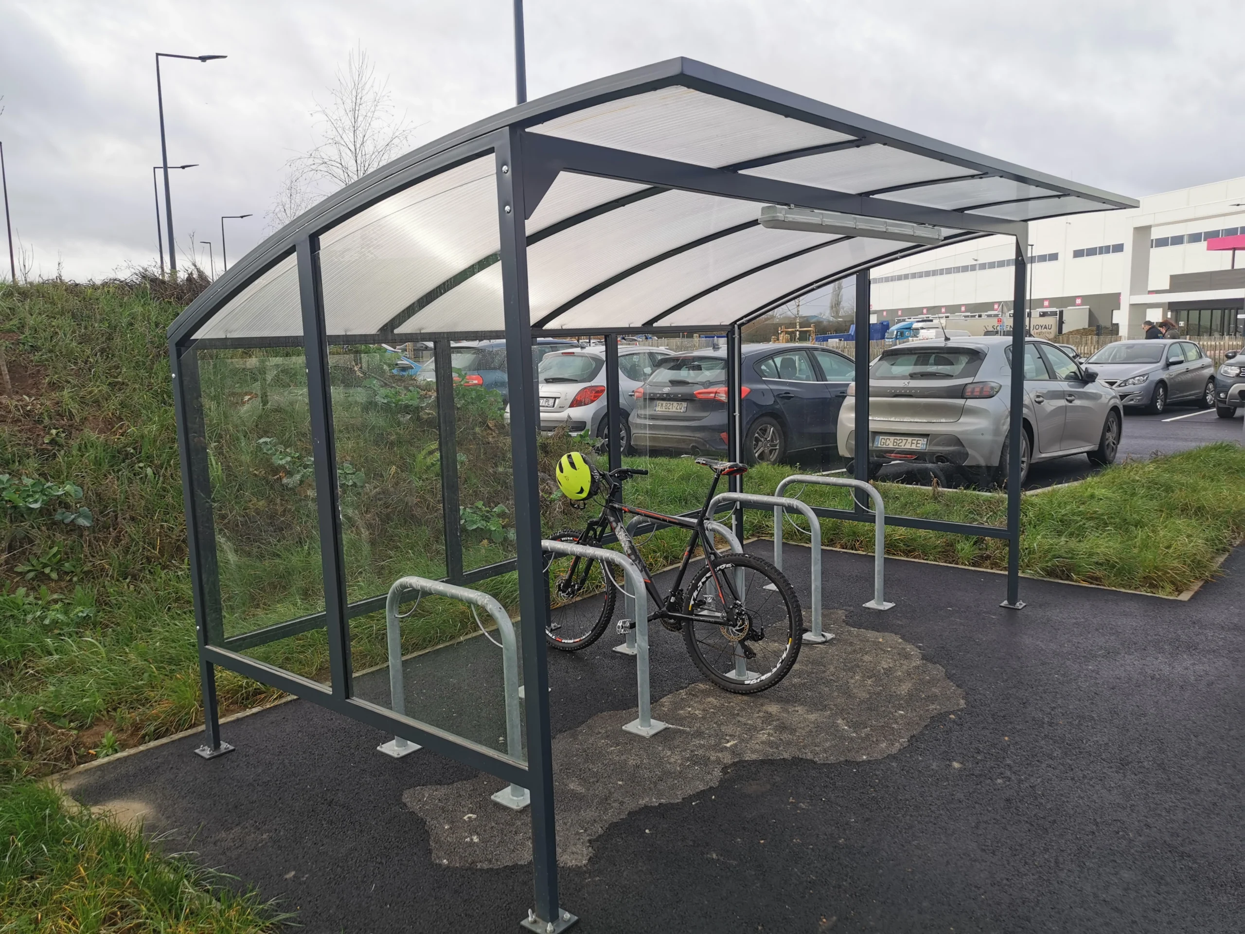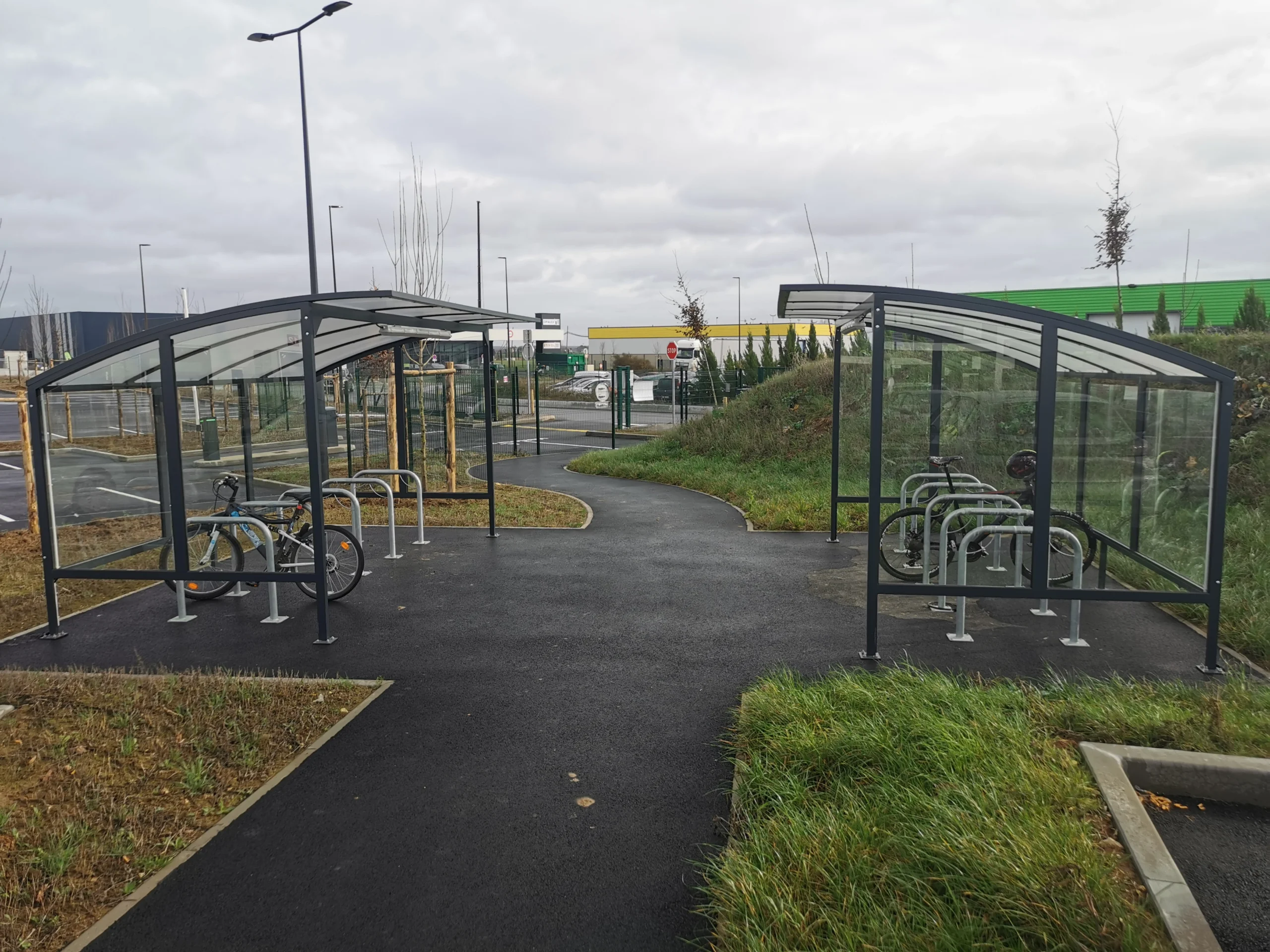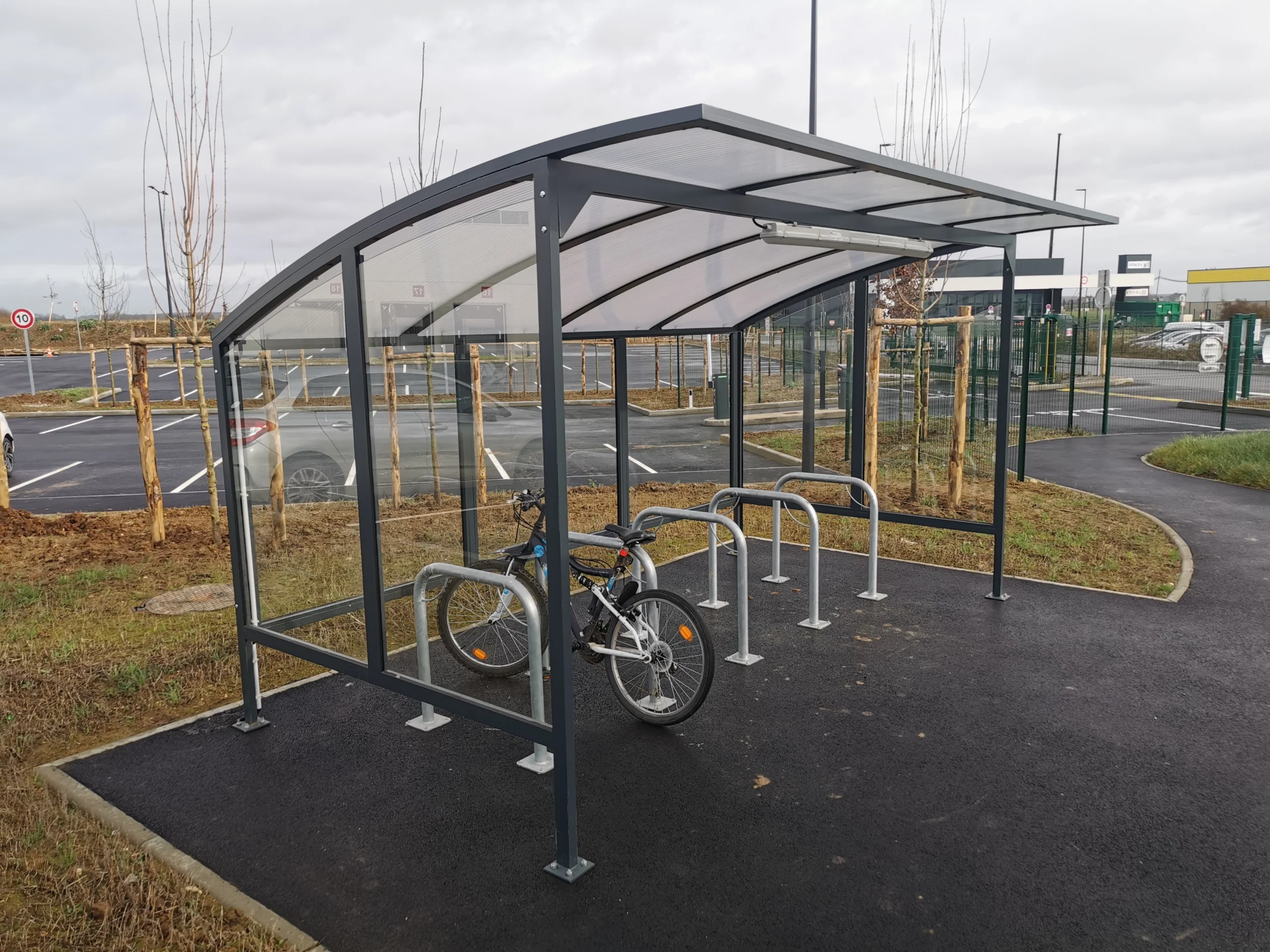 Nos équipes ont réalisé un escalier métallique droit entièrement fabriqué en acier galvanisé à chaud, garantissant une résistance maximale à la corrosion et une solidité adaptée à un usage intensif. Deux abris vélos métalliques ont également été produits, conçus avec une ossature en profilés tubulaires galvanisés et une couverture anti-intempéries, offrant une solution à la fois robuste, fonctionnelle et esthétique.