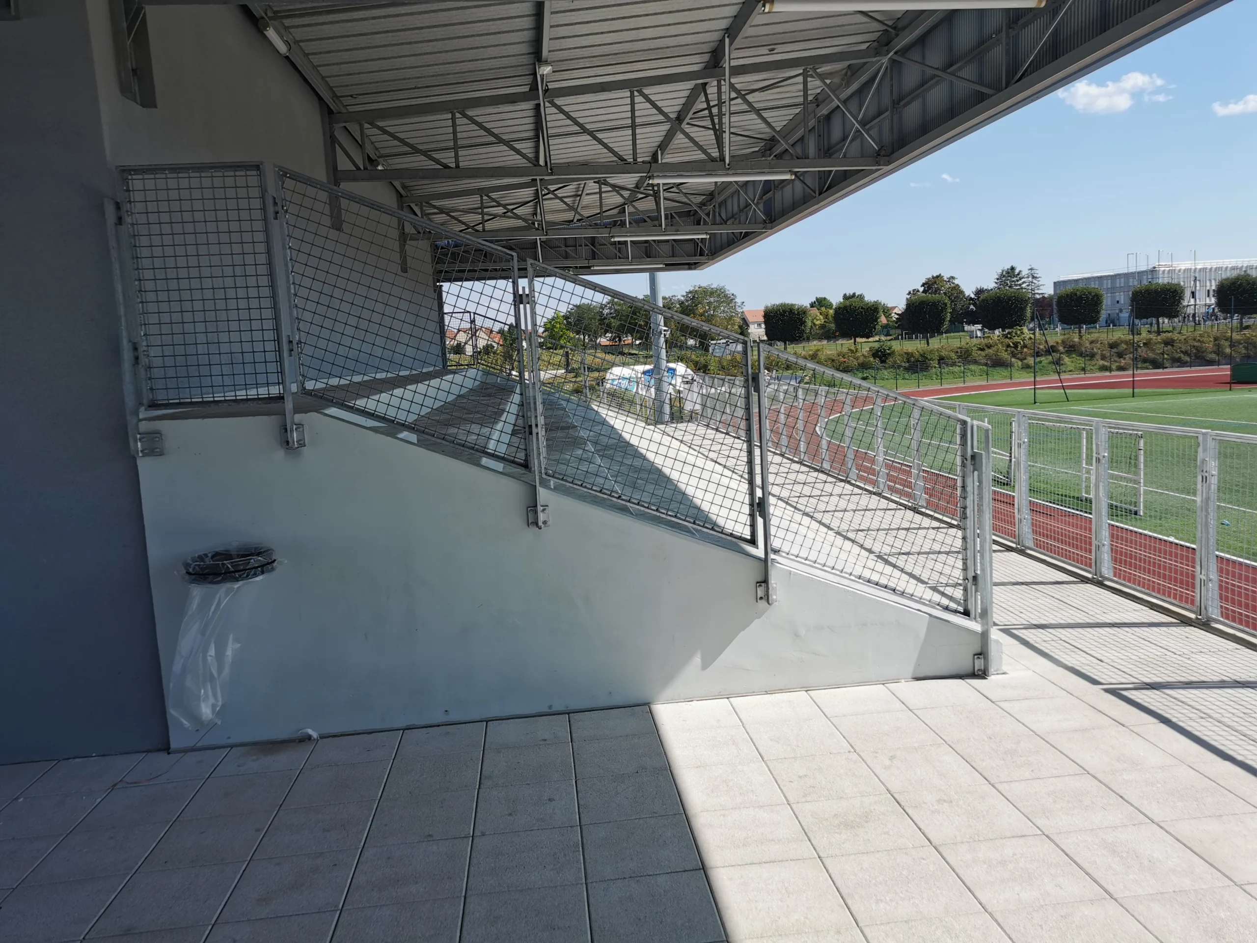 Au Parc des Sports de Thorigny-sur-Marne, MTI — Maintenance Travaux Industriels a assuré la conception, la fabrication et l’installation d’ouvrages métalliques sur mesure répondant à des exigences élevées de sécurité, de résistance et d’intégration architecturale.