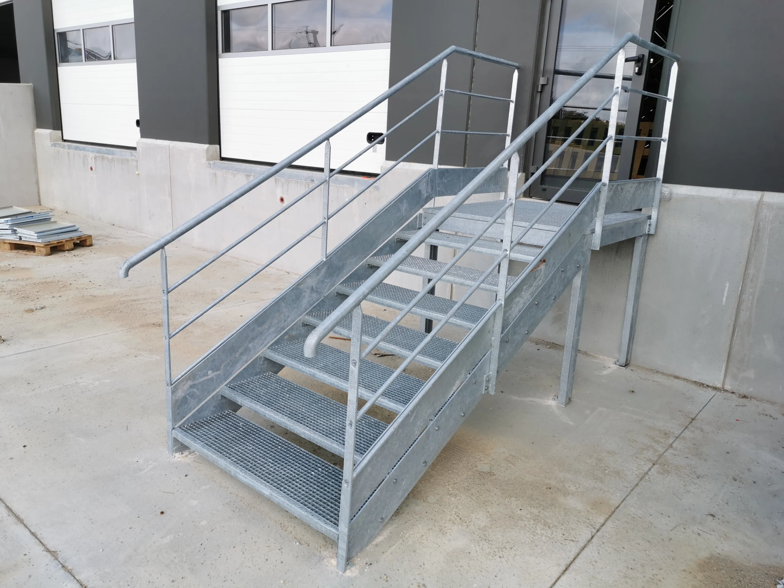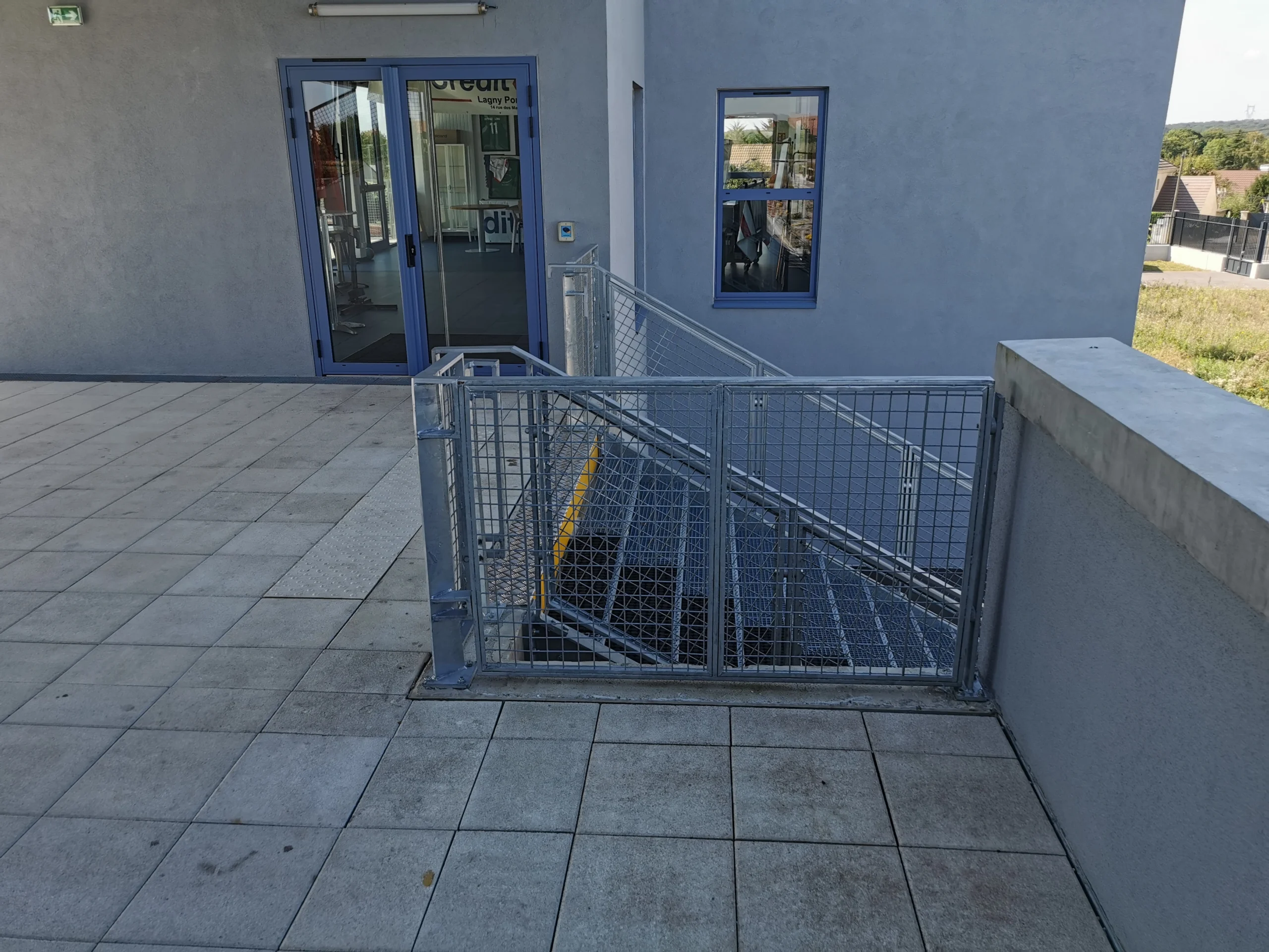 Les garde-corps métalliques associés ont été conçus pour répondre aux normes de sécurité ERP et réalisés avec des finitions galvanisées offrant une excellente résistance aux intempéries. Chaque soudure et protection de surface a été soigneusement contrôlée pour garantir la fiabilité à long terme.